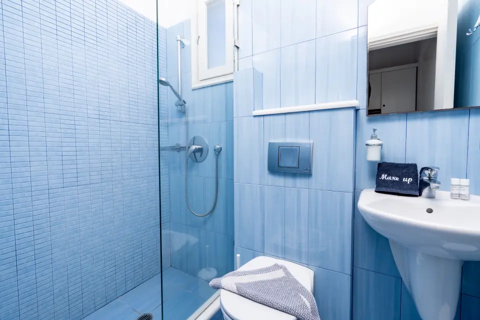 A bright, open room with sweeping views of the Aegean. Sit back on your balcony and watch the horizon turn golden at sunset.